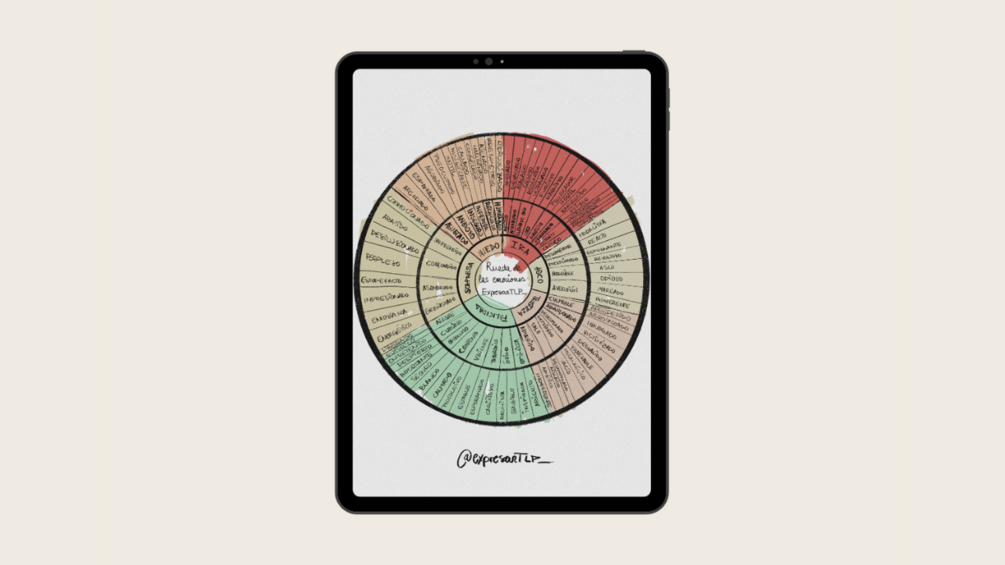 Una rueda emocional hecha con cariño y trazo a mano. Porque ponerle nombre a lo que sentimos es el primer paso para acompañarnos mejor.